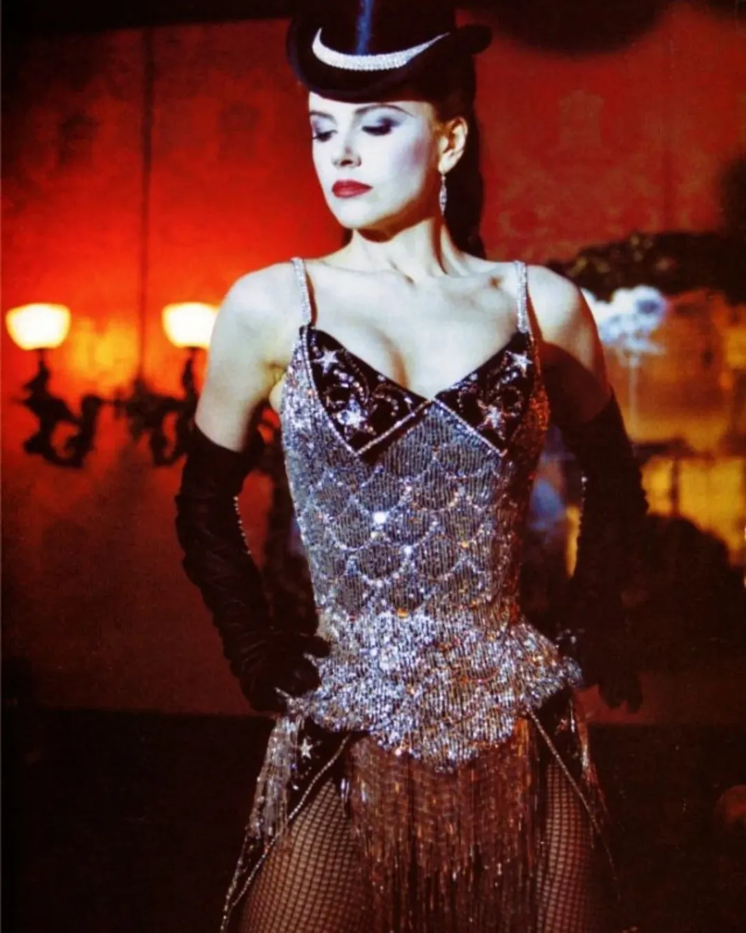 Ahora, deslumbró con un plateado body encorsetado bordado con cristales en honor a Satine, el personaje de Nicole Kidman en "Moulin Rouge" (2001), en donde la musica y la moda envuelven al legendario film; "donde la moda se convierte en actuación y Hollywood, por una noche vuelve a brillar como un escenario".